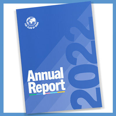 Annual Reports Produced yearly, these reports give an overview of some of the work and activities of the Club of Rome.