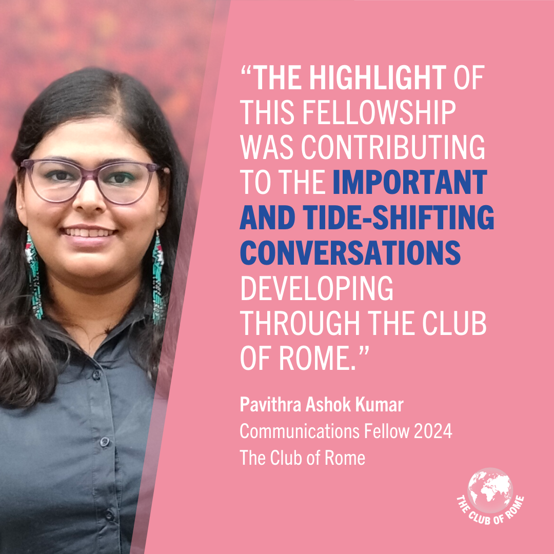 “My experience as a Club of Rome Communications Fellow has been nothing short of transformative. From day one, I was exposed to conversations on sustainability, systems change and real-world challenges and was guided on how to communicate the urgent need for transformative action. I have developed expertise in crafting compelling narratives to engage diverse audiences and foster collective action.