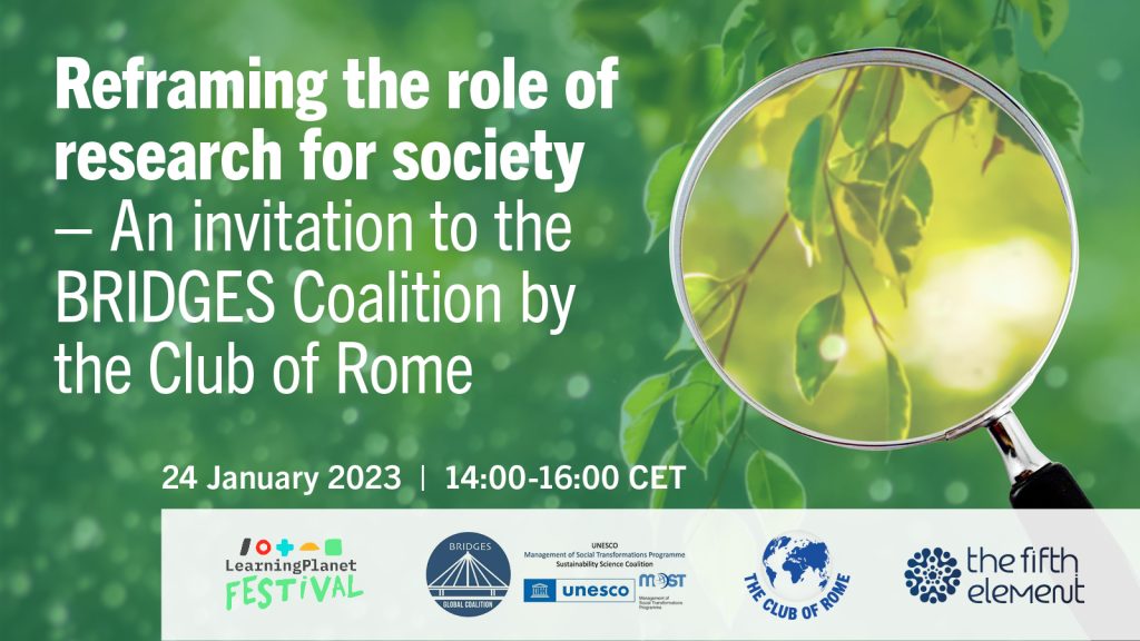Reframing the role of research for society – Invitation to the BRIDGES Coalition by The Club of Rome