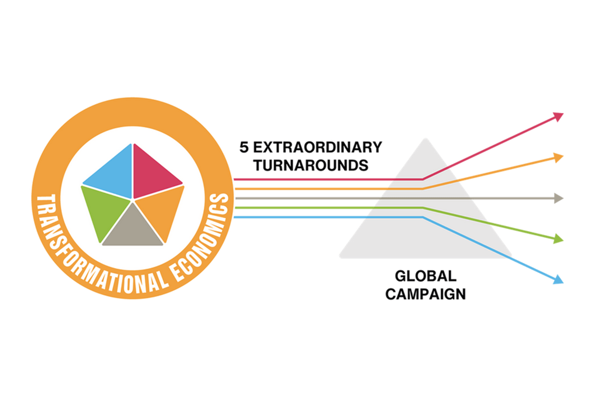The analysis explores two scenarios to 2100. The Too Little Too Late scenario is where we continue as now and results in increasing inequality and social tensions. In the second – climate change is stabilised, extreme poverty ends a generation earlier, social tension falls and wellbeing rises. This Giant Leap is achieved by adopting five extraordinary turnarounds to end poverty, address inequality, empower women, and transform our food and energy systems.