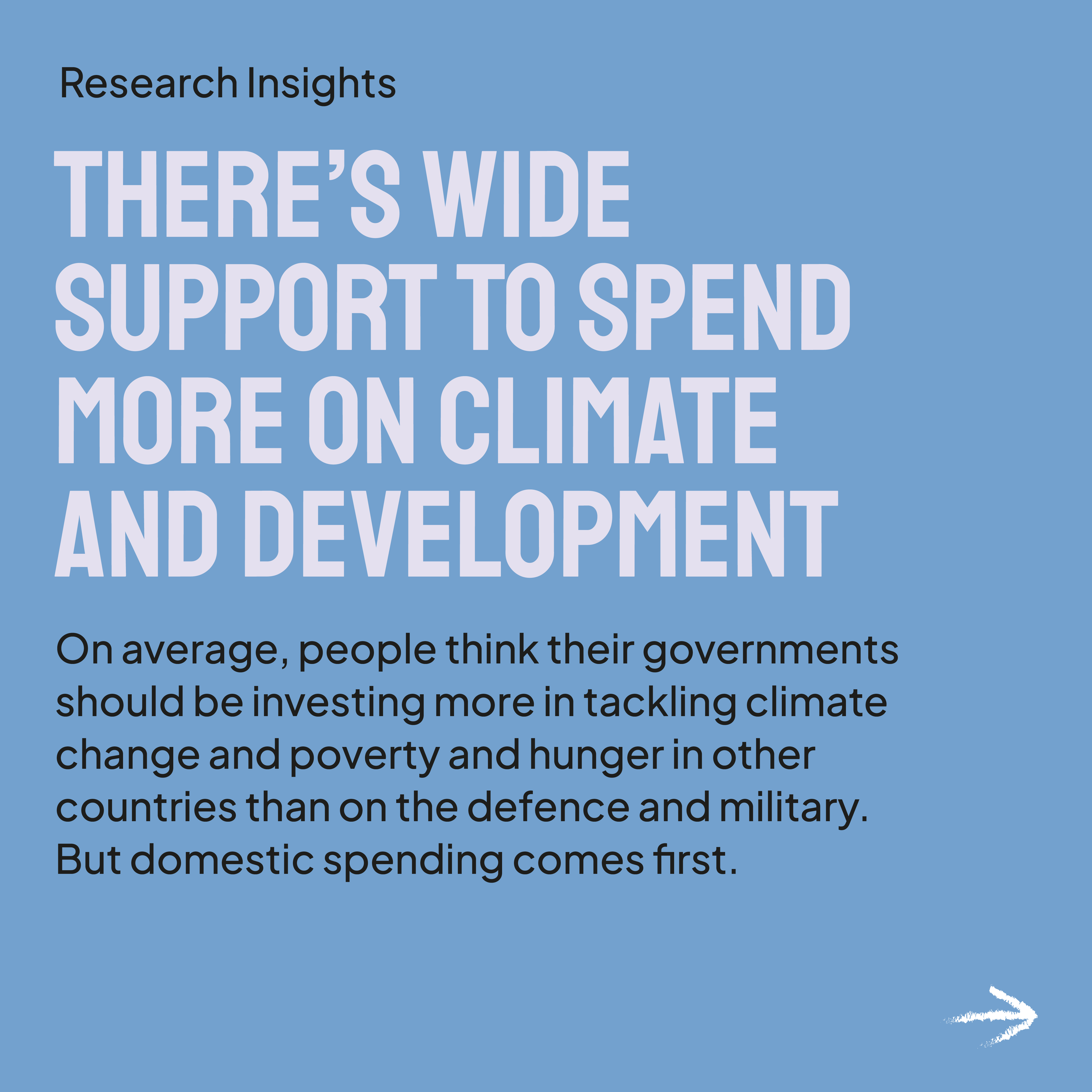 There is overwhelming public support for nations to spend more GDP on helping other countries tackle climate change than is currently spent on military and defence budgets. On average, voters want governments to spend 3.2% of GDP on tackling climate change and 3.1% on alleviating poverty and hunger, compared to 2% on defence. Support for investment in tackling climate change was highest in Germany, France and the USA at 3.6%, 3.5% and 3.3% of GDP respectively, and lowest in Japan at 2.4% of GDP.